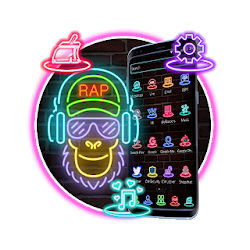 - مجموعة أيقونات نيون راب مونكي لمبدل أيقونات الاندرويد