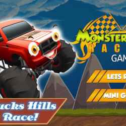 ؟Monster Truck Racing لعبة للأطفال والصغار ، دعنا نقود شاحنات أطفالك على التلال والصعود بسرعة للتغلب على شاحنات صديقك المنافس للفوز بالسباق الصغير ؟.