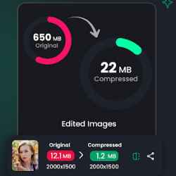 ليس هذا فقط يمكنك رؤية الحجم الإجمالي للصور المحددة؛ الحجم المضغوط الجديد، بالإضافة إلى مقارنة كل صورة مضغوطة بميزة ما قبل وبعد.