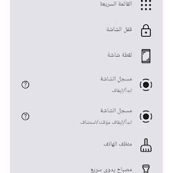 - الوصول إلى الوظائف الشائعة الاستخدام بسرعة:المصباح، قارئ الباركود والرمز QR، تسجيل الشاشة، لقطة الشاشة، القائمة السريعة، إيقاف تشغيل / قفل الشاشة، قفل شاشة اللمس، إبقاء الشاشة مضاءة، فتح المواقع الإلكترونية، إلخ.