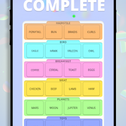 في لعبة دمج الكلمات، هدفك هو تنظيم الكلمات المتناثرة في فئات مرتبة وذات معنى.