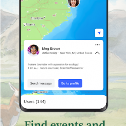 - خريطة الأعضاء:ابحث عن صحفيي الطبيعة الآخرين الذين يعيشون بالقرب منك وتواصل معهم! البحث في المناطق والاهتمامات المشتركة.