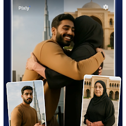 مع ميزات العناق والقبلة الفريدة في تطبيق Pixly، يمكنك عناق أحبائك أو تقبيلهم في لحظة سحرية تم إنشاؤها بواسطة الذكاء الاصطناعي.