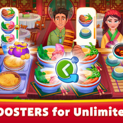 تتوفر التعزيزات لجعل لعبة محاكاة الطهي هذه أكثر متعة:لا يوجد حرق للطعام، و يوجد طبخ لحظي ، و مضاعفة العملات ، و خدمة لحظية والمزيد.