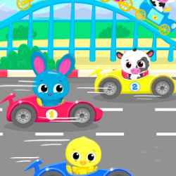 يريد Bunny Blu الذهاب إلى متنزه ترفيهي للأطفال تحت عنوان السيارات! استمتع بعجلات كاروسيل و فيريس المفضلة لديه مع أصدقاء حيوان رائعتين! الحصول على دونات حلوة لذيذ لأرنب بلو! انضم إلى مسابقة سباق سيارات ممتعة للأطفال واربح لعبة بلو المفضلة!