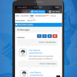 - مراقبة جميع الرسائل النصية المرسلة والمستلمة من جهاز طفل