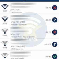 الاستخدام بسيط للغاية ، عند فحص الشبكات من حولنا ، سترى شبكات ذات صليب أحمر ، هذه الشبكات الآمنة ، قاموا بتعطيل بروتوكول WPS وكلمة المرور الافتراضية غير معروفة.