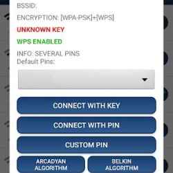 تلك التي تظهر مع علامة استفهام قد مكنت بروتوكول WPS ، لكن الPIN غير معروف ، في هذه الحالة يسمح لك التطبيق باختبار أكثر شيوعًا.