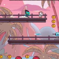 اجتز العوائق واقفز فوق الأعداء بينما تتسابق إلى النهاية في مستويات لعبة المنصات المجنونة الممتعة! دمر كل ما تستطيع تدميره من الوحوش والأشباح والطائرات والطيور الشريرة! املأ مقياس الكومبو لتحصل على اندفاع سريع لا يمكن إيقافه! ادفع العملات للحصول على عناصر القوة الإضافية أو المعدات أو احتفل بأناقة مع الملابس الفريدة والقبعات المرحة!