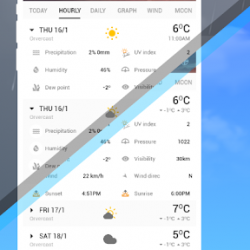 - دعم مخططات الطقس لتنبؤات الطقس لكل ساعة / يومية.